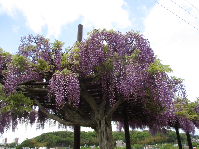 引地川親水公園のフジの開花状況は満開となっています。